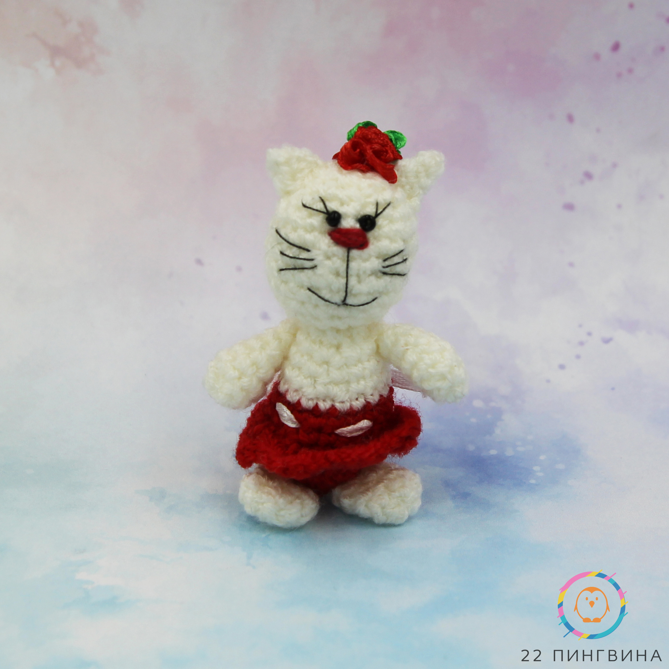 Вязаная игрушка Кошечка в Красной Юбке 7 см