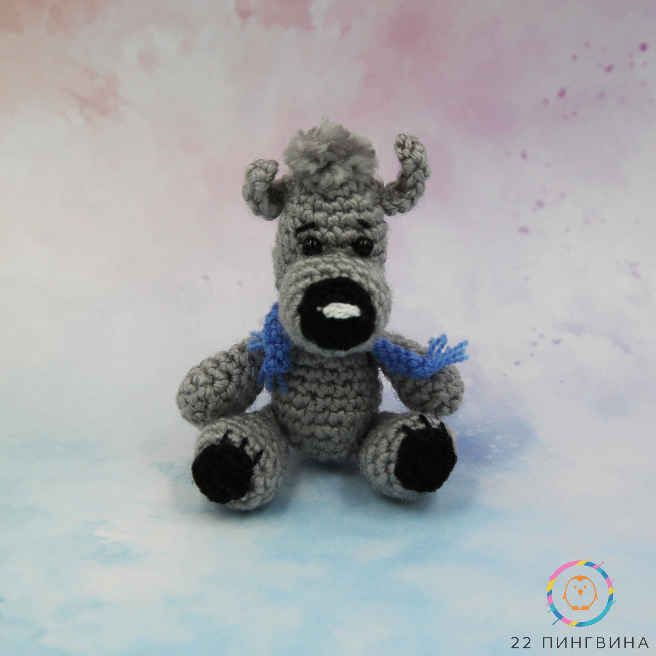 Вязаная игрушка Собачка в Синем Шарфе 7 см